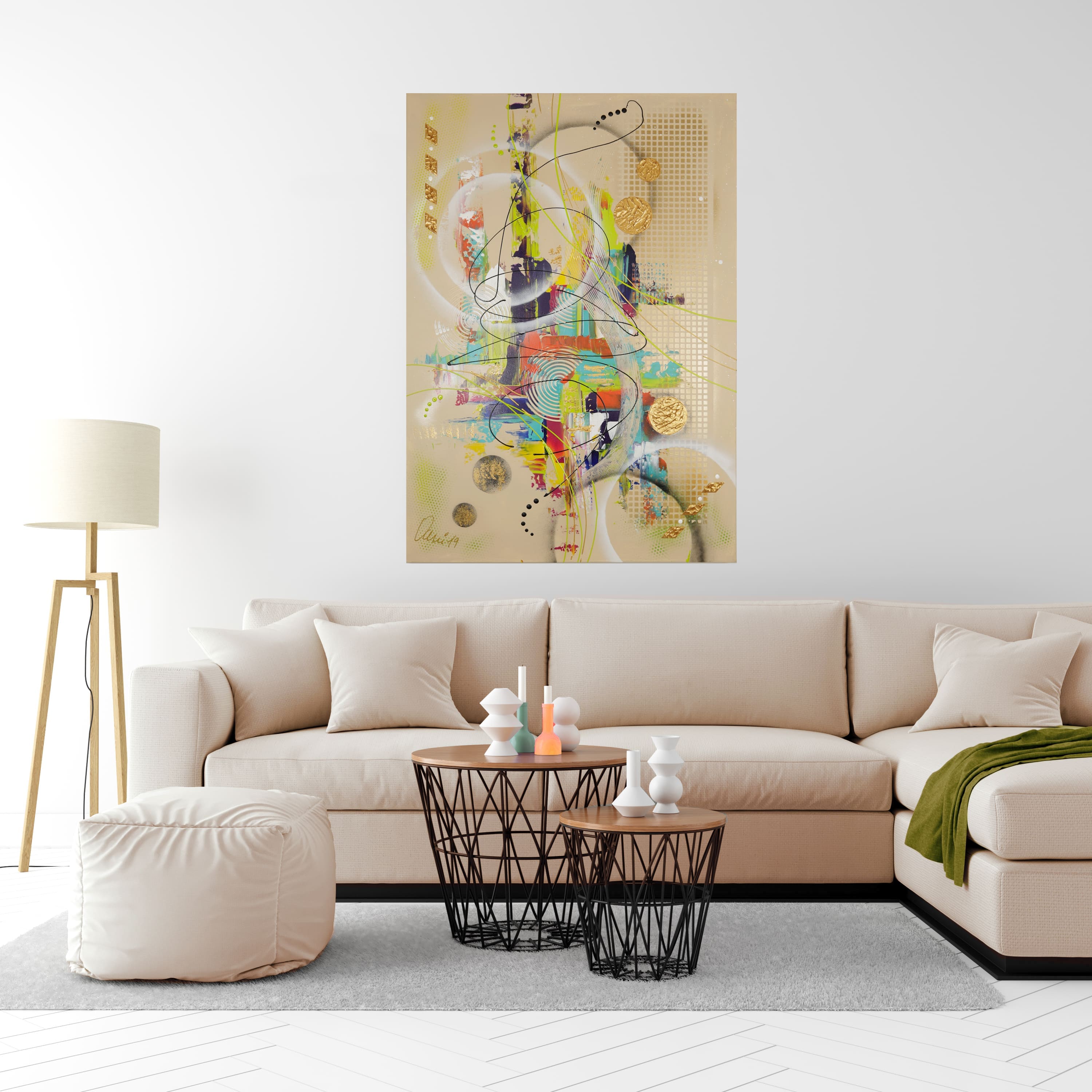 Verschiedene Acryl- und Metallicpasten auf Leinwand