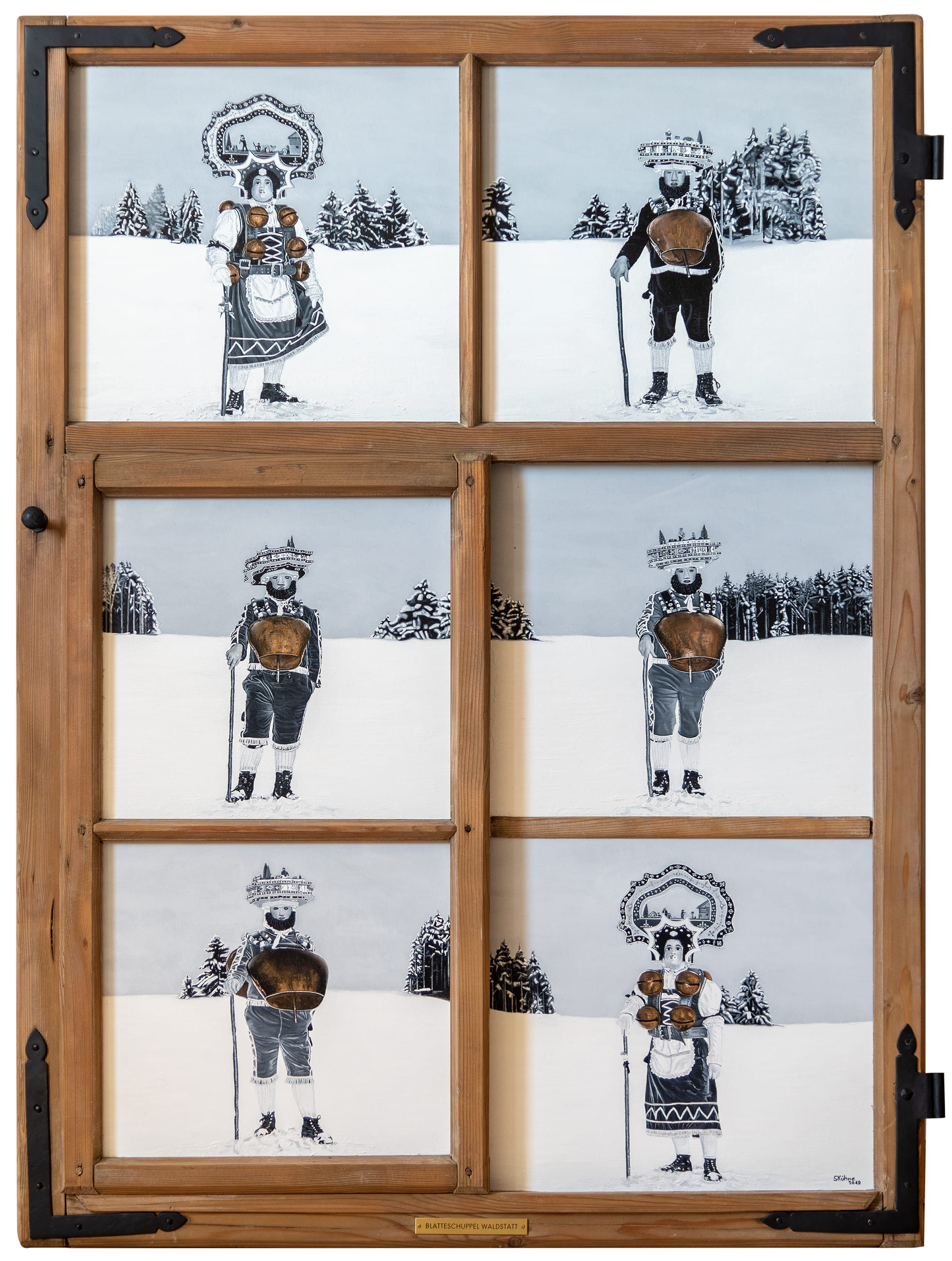 Öl auf Holz (eingebettet in altes Appenzeller-Fenster)